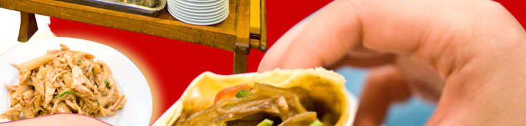 雖說是免費的湯,若是很難喝恐怕也沒人賞光佔便宜,必定這湯有獨到之處才引人垂涎,讓人想出花招就為喝上一碗。「朝天鍋」是以高湯底加入豬內臟、母雞,燉出來的美味肉湯,上桌時灑上幾葉香菜、翠綠的蔥花、打幾滴醬油添加風味,就是一碗肉香味濃的絕品好湯。內行的吃法是把湯中切好的豬內臟夾起來捲餅,一口餅一口湯,又飽腹又潤口,讓人開始領會當年農民「買一卷餅」的心機了。 |